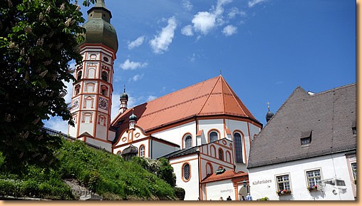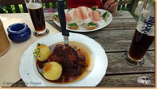 Wir freuen uns nicht umsonst auf Andechs und seine Klosterbrauerei. Auch das Wetter macht mit, es wird doch nicht am Ende unserer Deutschlandreise länger mal die Sonne scheinen? Der Stellplatz unterhalb des Klosters fast voll, gegen Abend stehen die Womos schon am normalen PKW-Parkplatz. Auch in den diversen Klostergaststätten herrscht reger Betrieb. Natürlich nutzen auch wir das "Biergartenwetter", mittags gibts Stelze, Biergartensalat, dunkles Weißbier, am Abend lassen wir wenigstens den Salat weg, dafür gibts als Betthupferl den Doppelbock. Dunkler Doppelbock wird auch gekauft damit wir daheim unseren eigenen Bierlikör brauen können. Natürlich besichtigen wir die wunderschöne Klosterkirche, der Aufstieg auf den Turm ist heute leider nicht möglich. |