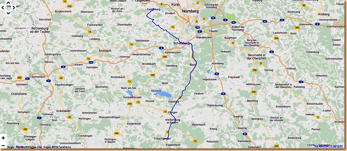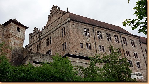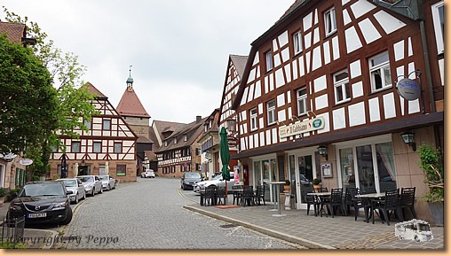 Nach einer ruhigen Nacht fahren wir um 9 Uhr ab zu unserem nächsten Stellplatz. In Cadolzburg ist es am Festplatz ruhiger, allerdings stehen auch hier schon zwei Wohnmobile. Stadtrundgang ist Pflicht, ebenso der Einkehrschwung in einem urigen Biergarten. |