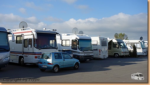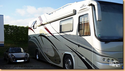 Obwohl der Stellplatz komplett voll ist haben wir eine angenehm ruhige Nacht hinter uns. Bei frischen 7°C erkunden Müsli und Helga den nahegelegen Wald, ich fotografiere unsere "großen Brüder", wir sind halt das "Nesthäkchen" in der Camperfamilie.