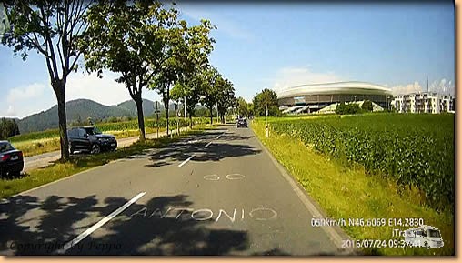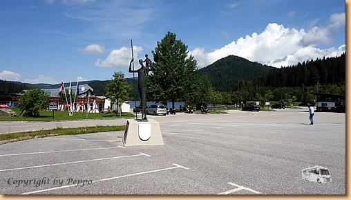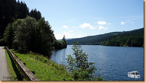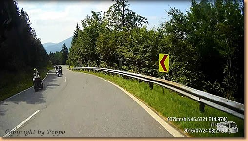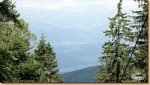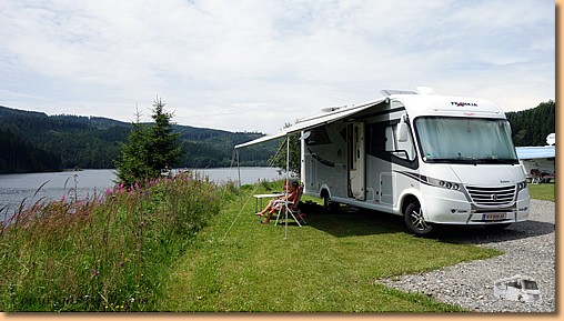 Nach einer ruhigen und angenehm kühlen Nacht genießen wir unser letztes Frühstück im Freien mit herrlichem Blick auf den Stausee, die Berge und die Blumenwiese vor uns. Ein paar Wolken ziehen auf - wir ziehen die Markise ein und machen uns auf den Heimweg. Wir bewältigen die Abfahrt zwischen den Motorrädern und fahren via Lavamünd, Klagenfurt und die Wörtherseesüduferstrasse nach Hause. |