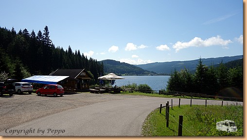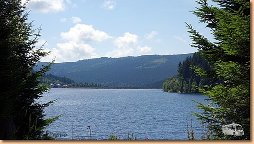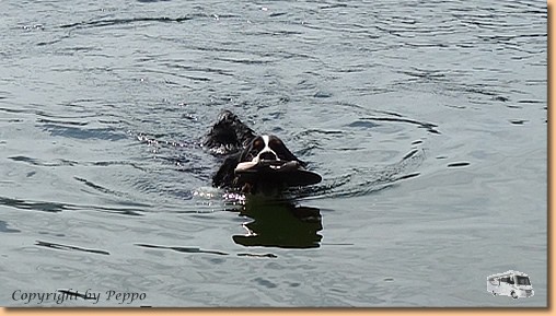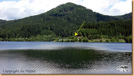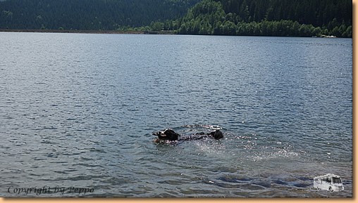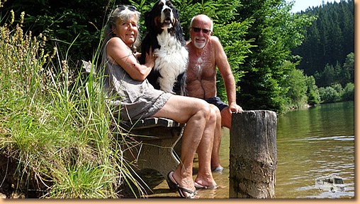 Helgas geplante Wanderungen werden aufgrund der Gewitterneigung am Wochenende kurzfristig auf nächstes Wochenende verlegt und genauso kurzfristig beschließen wir der Hitze zu entfliehen und ein paar Badetage am Stausee auf der Soboth einzulegen. Weniger Hitze und ein nasses Fell vom ausgiebigen Schwimmen erleichtern auch Müsli die kommenden Tage. So wie im vergangenen Jahr stehen wir wieder perfekt mit Blick aufs Wasser und werden von Waltraud und Lois P., Bekannte aus Wolfsberg, freudig begrüßt. |