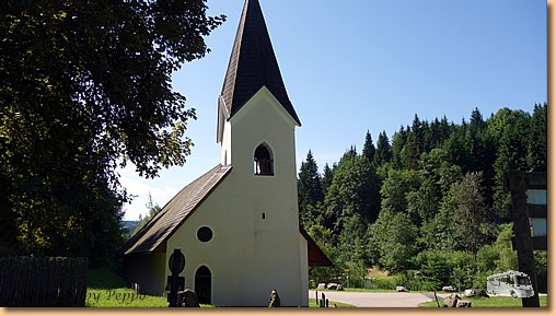 In den Nachtstunden zieht ein ordentliches Gewitter über uns hinweg. Begleitet von Starkregen, Wind, Donner, Blitz und etwas Hagel. Ein Glück, dass wir wieder ein dichtes Womo haben. Dafür wieder strahlender Sonnenschein am Morgen, einem Frühstück im Freien steht nichts im Wege. Müslis Morgenspaziergang verbinden wir gleich mit Schwammerlsuchen und werden auch fündig. Am Vormittag schwinge ich mich aufs Rad und erkunde rund um den See die Gegend. So finde ich auch den wirklich kleinen kärntner Ort St. Vinzenz. |
