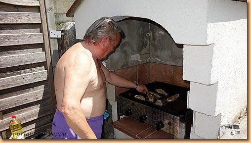 Nicht ohne Hintergedanken, denn bei unseren ehemaligen Nachbarn Greti und Hansi ist eine Grillerei angesagt und wir sind eingeladen. Pünktlich um 12:30 Uhr steht das Womo in der Garage und wir sitzen am reichlich gedeckten Tisch. |