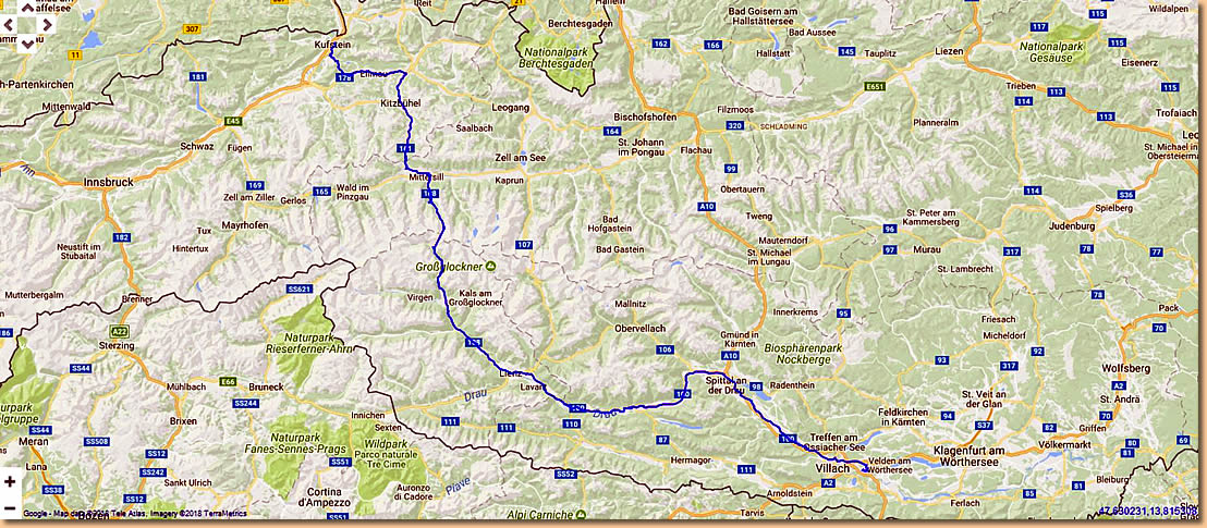 Auf Bundesstrassen kommen wir ohne Verkehrsprobleme gut voran, machen einen Zwischenstopp am Felbertauern und knapp nach Mittag steht unser Womo wohlbehalten in der Garage. |