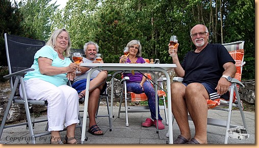 Mitgefangen - mitgehangen - drei Tage zusammen am Werkstattstellplatz ist doch am Abend eine Flasche Prosecco wert. |