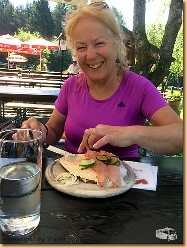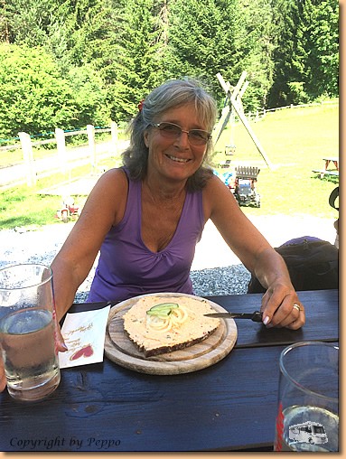 | Dort halten wir wohlverdiente Rast und lassen uns Saft und Brot schmecken! |