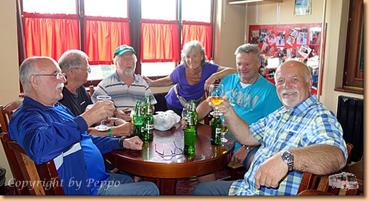 Am Nachmittag treffen wir ganz zufällig in der "Schluckstube" unsere Camperfreunde auf eine Bierrunde, keine Frage, lustig ist es und schreit nach einer Wiederholung. |