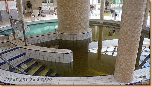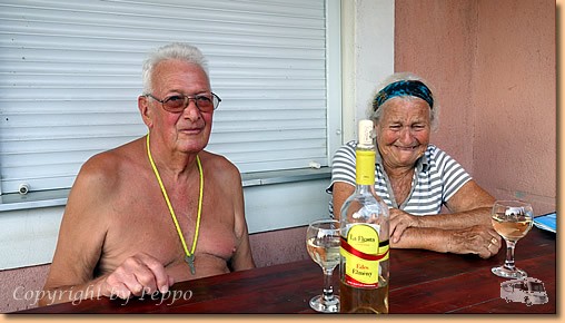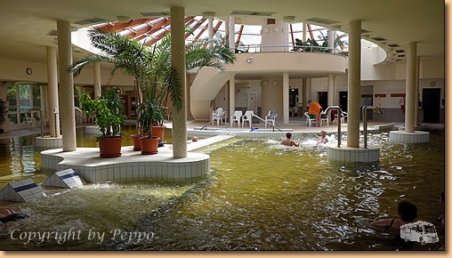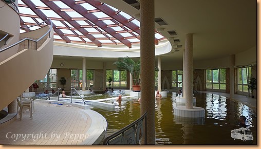 Die ungewöhnlich heißen Temperaturen lähmen etwas unsere Aktivitäten. Die einzige, die ständig arbeitet ist die Klimaanlage. Wir beschränken unsere Badetätigkeit nur mehr auf die Vormittagsstunden, denn 38°C heißes Thermalwasser und 29°C im Schatten (in der Sonne 48°C) sind dann doch etwas heftig. Mittagessen bei Rosi, am Nachmittag halten Helga und Müsli einen ausgiebigen Mittagsschlaf im wohltemperierten Womo, während ich Toni etwas zur Hand gehe. |