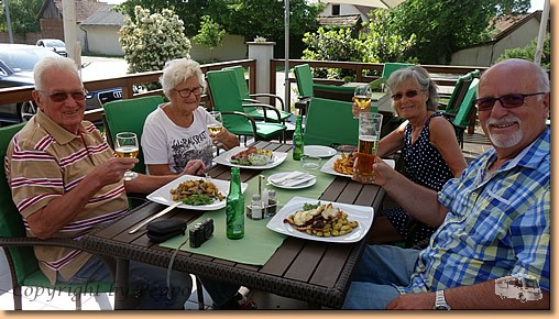 Am Nachmittag dürfen die Frauen mit zum Mittagessen in eines der ausgekundschafteten Lokale. (Fürdökert) Bestes Ambiente, ausgezeichnetes Essen, wir beschließen eine vorgezogene Muttertagsfeier daraus zu machen. |