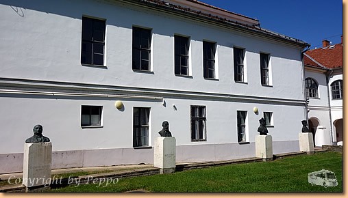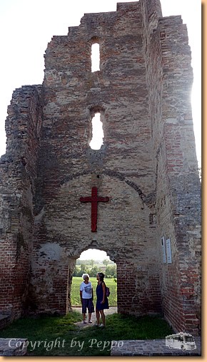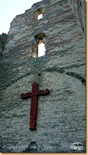 Am Vormittag der übliche Thermenablauf. Am Nachmittag nimmt uns Toni zu einer mittelalterlichen Kirchenruine nach Bodaszölö in der Nähe von Hajdoböszörmeny mit. Um auf den kleinen Hügel zu kommen muss man, für uns komplett unverständlich, eine Bahnlinie überklettern. Ungarn ist halt doch ein bissl anders. |