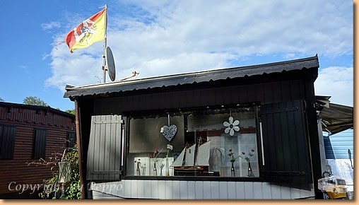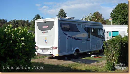 Grosse Aufbruchstimmung am Stellplatz und auch wir machen uns auf nach Dingden. Der Pfingstverkehr hält sich in Grenzen und so kommen wir ohne Stau gegen Mittag am Campingplatz im Ferien- und Erholungsgebiet Dingdener Heide an. Unser Freund Bernd, der ebenfalls hier wohnt, hat uns zum Glück ein Plätzchen reserviert, denn zu den Feiertagen ist alles voll. |