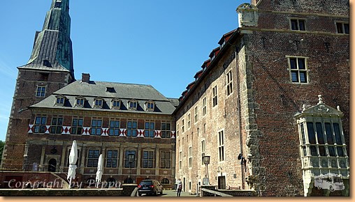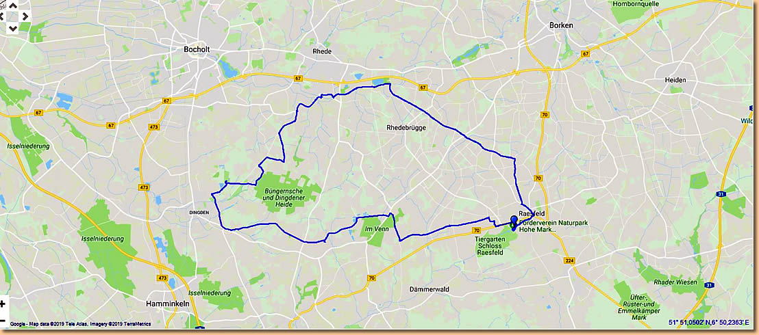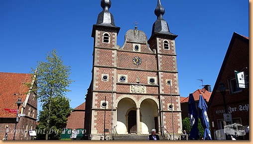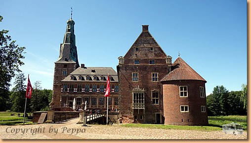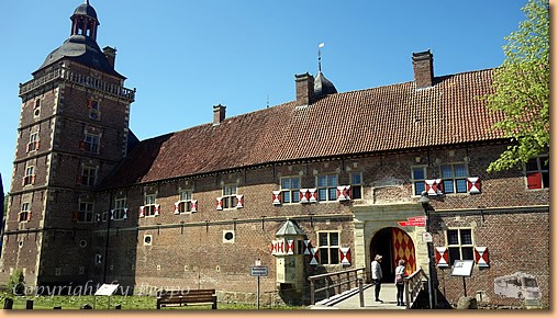 Aus London und Villach kommen liebe Grüße und Wünsche zum Vatertag! Herzlichen Dank an die Kinder! Bernd hat auch ein Geschenk, 45 km radfahren steht am Tagesplan. Auf Radwegen durch Wiese und Wald radeln wir zum Wasserschloss Raesfeld. Ein gut erhaltenes Gebäude, welches für Hochzeiten und Seminare gebucht wird, sehr gepflegte Aussenanlagen und natürlich Cafes und Restaurants zum Ausrasten. |