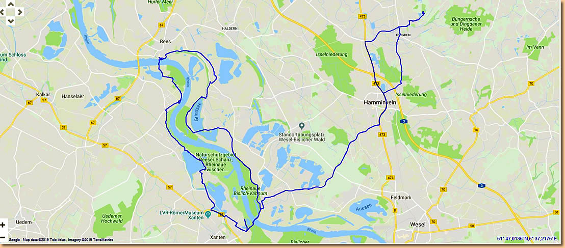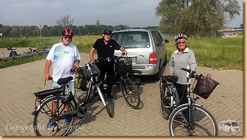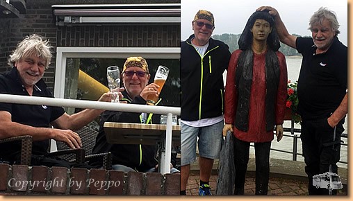 Leider fängt es stark zu regnen an und die Stadtbesichtigung fällt aus. Nach 37 km setzen wir ziemlich nass wieder über, nix wie rein ins Auto und ab nach Hause, fast erlebten wir heute wettermäßig den R(h)einfall am Niederrhein.