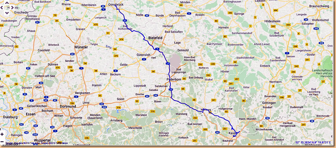 Nach einer ruhigen Nacht gehts nach dem Frühstück auf nach Kassel. Die Autobahn ist überraschend wenig befahren und so kommen wir ohne Probleme und dank dem Navi punktgenau bei Sigrid und Rudolf an. Herzlichen Dank für die gute Bewirtung und fürs nette Zusammensitzen. Fast 2,5 Jahre ist unser letztes Treffen her, inzwischen ist einiges passiert und es gibt daher viel zu erzählen. |
