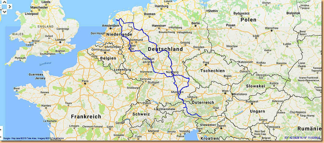 Perfekter kann das letzte Frühstück auf unserer Deutschland - Holland -Tour gar nicht sein. Wunderschönes Wetter, grandioser Ausblick auf Berge und Tal, wir geniessen die Zeit und dann aber endgültig ab nach Hause. Um 13 Uhr steht unser Womo in der Garage und wir kurze Zeit später im Auto nach Villach. |