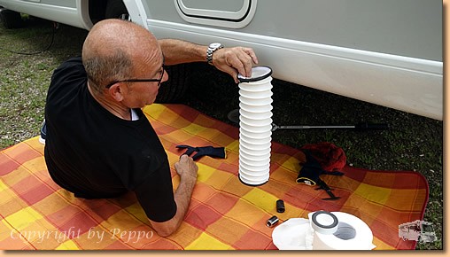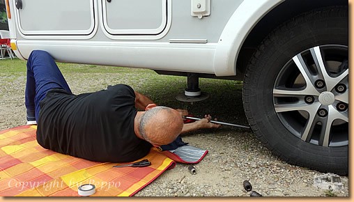 Gestern die Radeln, heute das Womo, Klaus steht uns immer mit Rat und Tat zur Seite. Auf Sizilien verspricht er uns die von ihm entwickelten Hydraulikschutzhüllen unserer Hubstützenanlage, und natürlich erfolgt die prompte Lieferung und die perfekte Montage. Vielen Dank, dass du deine Freizeit für uns opferst. |