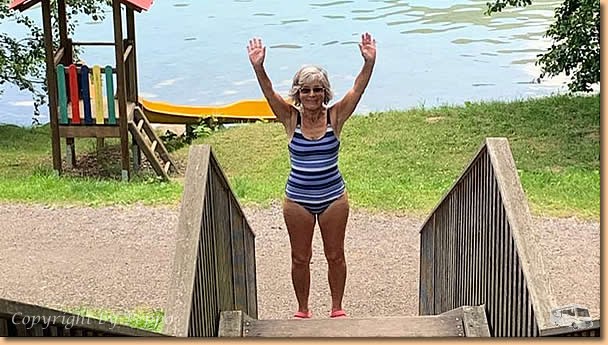 Ein Bad im noch etwas kühlen Ossiachersee steht für Helga noch auf der Tagesordnung, dann wird noch gemütlich zusammengesessen und geplaudert. |