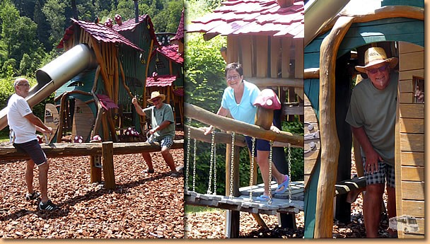 Unser heutiges Tagesprogramm schaut folgend aus: am Vormittag spazieren wir mit Bärbl und Klaus über den Campingplatz, kommen natürlich auch bei einem Spielplatz vorbei und da gibt es für die "großen Kinder" kein Halten. |