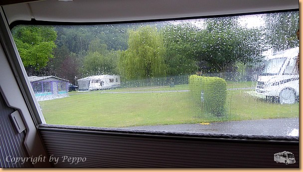 Über den heutigen Tag breiten wir anstatt des Mantel des Schweigens den Regenmantel drüber! In den frühen Morgenstunden öffnet Petrus seine Schleusen und vergisst sie bis zum jetzigen Zeitpunkt wieder zu schließen. |