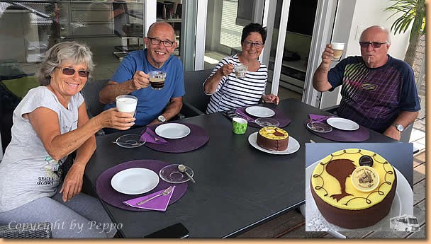 Nach 1,5 Stunden endet die Sightseeing-Tour gemütlich auf unserer Terrasse. Natürlich standesgemäß mit einer Villachertorte samt Cappuccino. |
