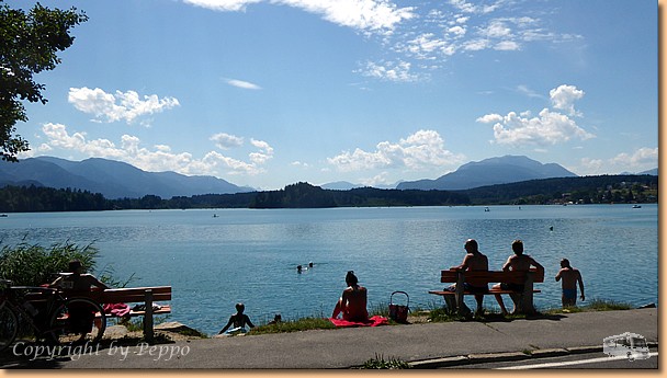 Die kleine Luna ist allerliebst und wir wünschen viel Glück mit der kleinen Maus. Wir radeln weiter durch das fast menschenleere Naturschutzgebiet Finkensteiner Moor, rund um den Faaker See sieht die Sache schon anders aus. Bade- und Campingplätze sind voll und am Radweg tut sich auch einiges. |