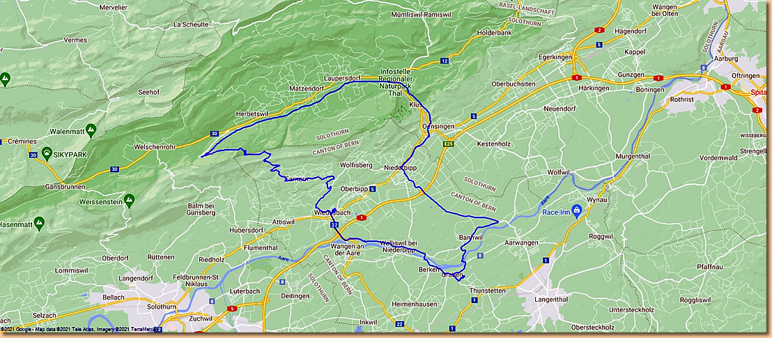 Heute ist der Tag wieder einmal ziemlich ausgefüllt. Am Vormittag radeln wir entlang der Aare nach Wangen. Ein nettes kleines Städtchen mit einer imposanten alten Holzbrücke. Zu Mittag sind wir retour und zehn Minuten später steht unser Freund Toni vor der Türe. Direkt von seiner Modellflugwoche angereist fährt er bald weiter um uns dann mit Yvonne am Nachmittag abzuholen. Unsere Freunde zeigen uns Wiedlisbach und dann geht es 1076 m hoch auf den Bättlerchuchi wo wir mit einer tollen Aussicht belohnt werden. Ein paar Höhenmeter runter gehts in eine urige Beiz auf ein "Zvieri". |