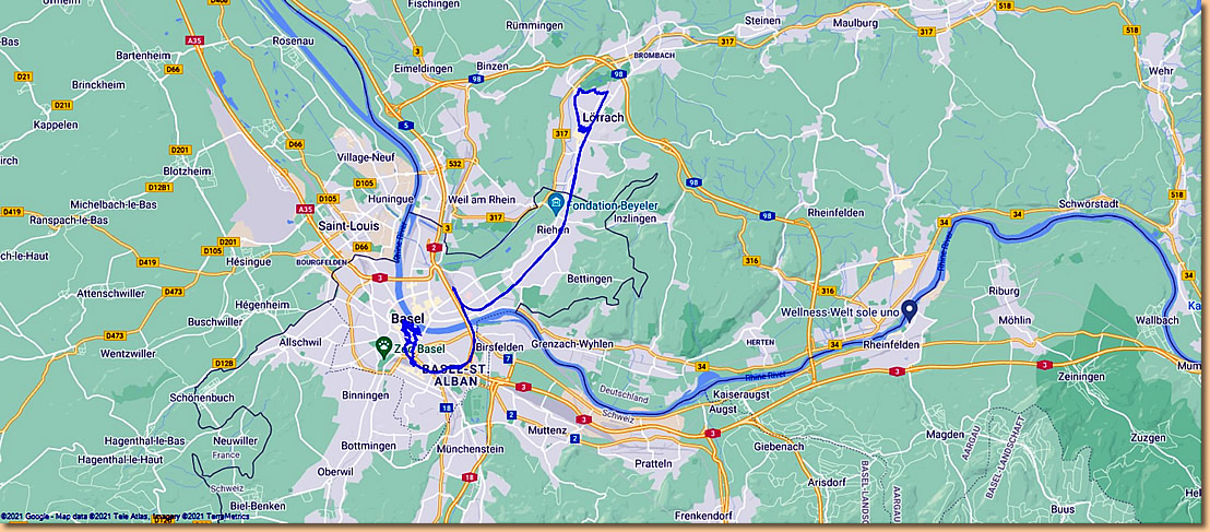 Wir nützen die in der Stellplatzgebühr enthaltene Gästekarte um kostenlos mit S-Bahn, Bus oder Zug unterwegs zu sein. Basel erreichen wir in 25 Minuten und auf geht es zum Stadtrundgang. Unter den vielen Kirchen ist das Münster natürlich am Imposantesten. Zuerst bestaunen wir das Kirchenschiff, gehen anschließend in die Krypta hinunter und dann wird es zünftig. 248 ziemlich hohe Stufen auf einen der Türme und es wird immer steiler und enger. Allerdings werden wir mit einem fantastischen Ausblick über Basel belohnt, den zweiten Turm heben wir uns allerdings für das nächste Mal auf. |