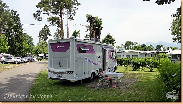 Hier sind wir uns wieder einig, einen Platz unter Bäumen und den obligaten Begrüssungsschluck. Nach einem Rundgang wird der Griller aktiviert und um 18 Uhr lassen Deutsche und Portugiesen den Ball rollen. |