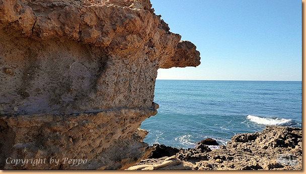 In der Früh wieder frisch, aber unser Wärmespender ist aktiv und es wird ein wunderschöner warmer Tag. Wir dürfen wieder einmal auf Stanley aufpassen und gemeinsam machen wir uns auf eine 10,7 km Klippen-, Strand- und Waldwanderung. Beim Aussichtsturm ist der ca. 110 km Luftlinie entfernte Ätna sehr gut zu sehen. Er hat sich wohl in den vergangenen Stunden mit hoher Aktivität ausgetobt, im Moment ist nicht die kleinste Rauchwolke zu sehen. |