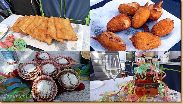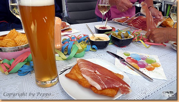 Bärbl und Klaus laden zum Faschingsdienstagsapero ein und dieser dauert bis in den späten Nachmittag. Frittierter Pizzateig mit Parmaschinken, pikante Aufstriche, frittierte Fische, Muffins und jede Menge Flüssiges, vielen Dank und ein fröhliches LEI - LEI! |
