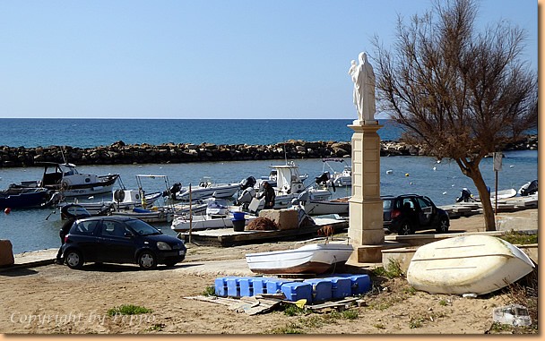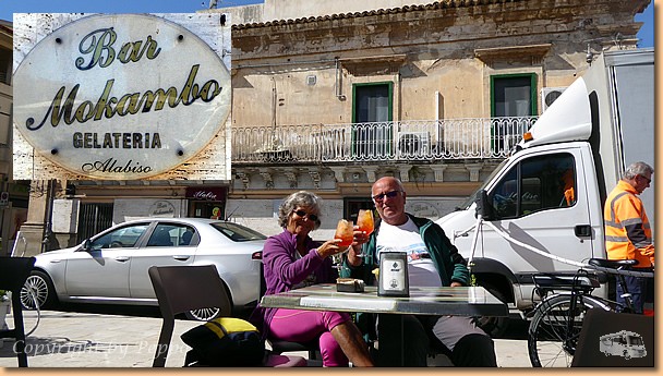 Die Morgentemperatur steigt, die Sonne scheint und wir sitzen schon wieder auf den Rädern. Punta Secca liegt ziemlich verlassen da, trotz zona gialla sind alle Restaurants zu, selbst der Bankomat funktioniert nicht. |