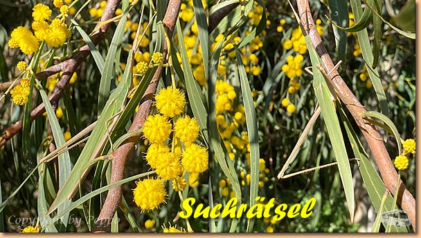 Am Vormittag eine ausgiebige Waldrunde. Die Goldakazien blühen, ein wunderschöner Anblick, die Bäume voll mit kleinen gelben Bommeln. Auch die Schnapsbar hat offen und gestärkt geht es wieder Richtung CP. |