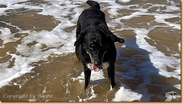 Zum Radfahren ist es ein bisschen zu windig, aber ideales Wetter für einen ausgiebigen 11 km Spaziergang mit Stanley. Quer durch den Wald zum Turm und dann den Strand entlang wieder nach Hause. |