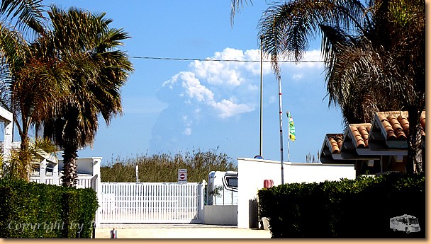 Heute schickt der Ätna ordentliche Rauchzeichen. Wir sind froh, dass wir rund 110 km Luftlinie entfernt sind, haben wir doch schon einen Ausbruch "hautnah" miterlebt und da hat unser Womo und auch wir ziemlich was abbekommen. Am Vormittag radeln wir zum Einkaufen nach Santa Croce, am Nachmittag steht baden, ratschen und lesen am Programm und am Abend das erste Play - Off - Eishockeyderby KAC : VSV! |