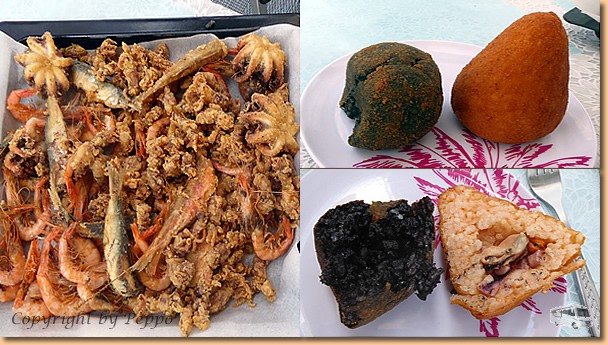 Erntefrische Melanzane, paniert mit Knoblauchsauce, ein Gedicht. Den Rückweg nehmen wir wieder der Küste entlang. Der Wind wird noch stärker und leider auch unangenehm kalt, also für heute ciao und ab ins Womo. |