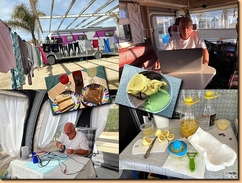 Kurze Aperopause muss sein, dann wird repariert, gekocht und gottseidank hat der Gelatimann ein Einsehen und versorgt uns mit der Nachspeise. Arbeitstag beendet, morgen gehen wir radeln und lassen es uns wieder gutgehen. |