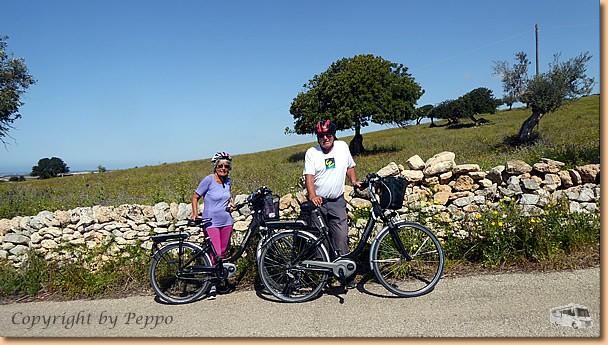 Wir radeln auf bekannten Wegen nach Donnafugata um dort wieder einen Cappuccino vor der Bar zu genießen. Heute leider nein, überfüllter Parkplatz und jede Menge Polizei. Es findet ein Radrennen statt und deshalb heißt es für uns wieder retour nach Santa Croce. |