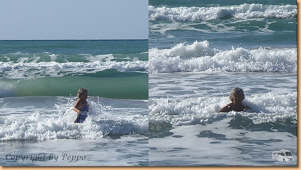 Trotz strahlendem Sonnenschein bleiben wir heute daheim. Am Vormittag erledigen wir einige Arbeiten, ich u.a. am Computer und Helga ist mit dem Abräumen des Weihnachtsschmuckes beschäftigt. Nach getaner Arbeit kommt der angenehmere Teil des Tages dran, jeder geht seiner Lieblingsbeschäftigung nach. Es wird gebadet, eine im Mare und der andere in der Sonne.