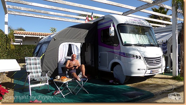 Bärbl, Klaus und wir sind mit der Planänderung zufrieden und den verdienten Apero gibts dann vorm Womo. Arancini mit einer Fülle aus Pistazien, Käse und Speck gibts zum Mittagessen, schmecken ausgezeichnet und sind nicht das letzte Mal auf unseren Tellern. Im wohltemperierten Vorzelt noch ein bisschen lesen und relaxen und dann gehts für heute ab ins Womo.