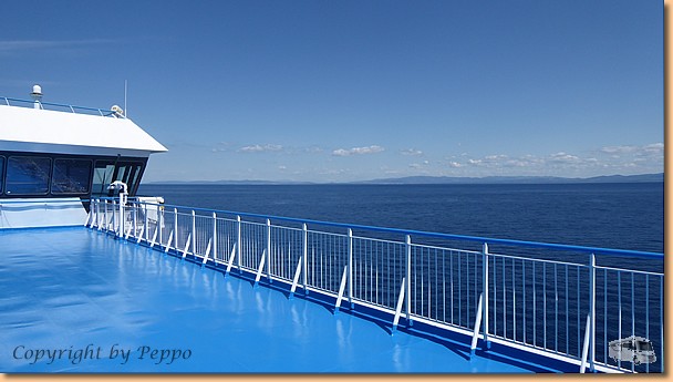 Wir genießen eine herrlich ruhige Überfahrt, kein hoher Seegang, keine knarrende Schiffsgeräusche und, dank der geringen Passagieranzahl auch von dieser Seite angenehme Ruhe. |