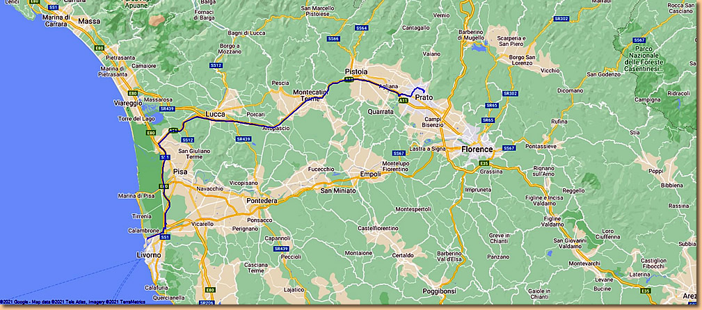 Wir beschließen noch rund 100 km zu fahren und stehen nun für heute Nacht auf einem riesigen Parkplatz im Zentrum von Prato. Es herrscht hier wieder orange Zone, aber wahrscheinlich ist der Grossteil der sonst offenen CP bzw. Stellplätze geschlossen und ein Platz in der Stadt ist auf alle Fälle besser als eine Übernachtung auf einer Autobahnraststätte. |