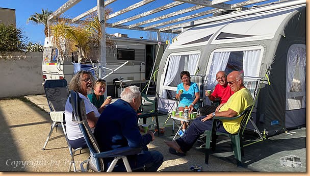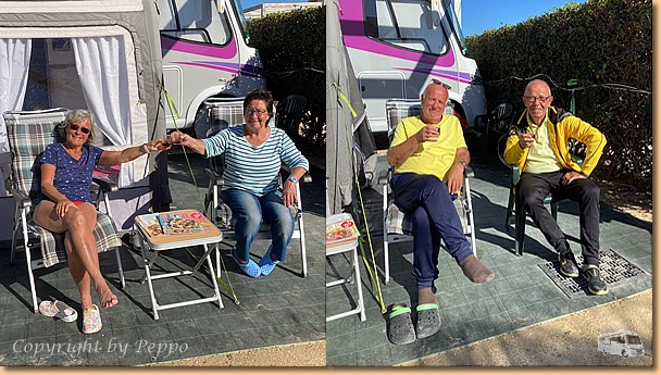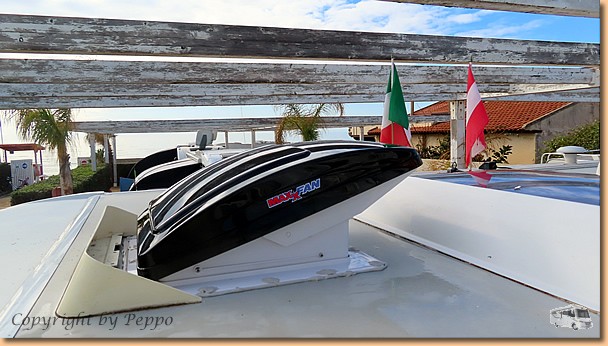 Arbeitseinsatz Tag 2! Klaus und ich nehmen den Einbau der zweiten Ventilatorhaube in Angriff, Bärbl und Helga fahren zum Einkaufen nach Santa Croce. Zu Mittag sind wir alle wieder vereint, Arbeit erledigt und einem Umtrunk steht nichts mehr im Wege. Ulrike und Wolfgang kommen zur "Einweihung" mit einer Flasche Prosecco vorbei, aus einer netten 5 - er Runde werden sieben und einem lustigen Nachmittag steht nichts mehr im Wege. Oli erleichtert sein Wohnmobil von Schnapsvorräten und unser italienischer Nachbar stellt sich auch mit Pflaumenlikör ein. |