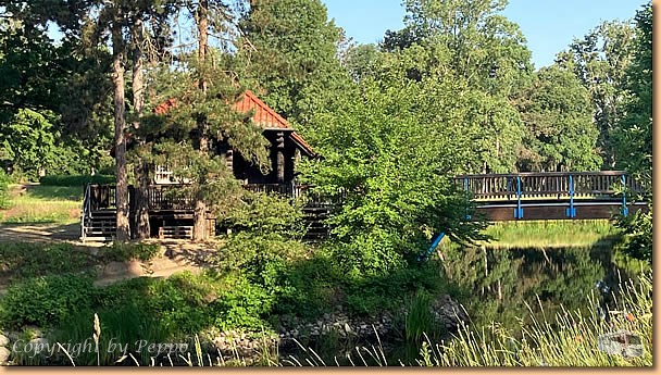 Direkt ober dem Stellplatz im Restaurant "Zum Fährmann" wollen wir zu Mittag essen, leider entspricht die Speisekarte überhaupt nicht unseren Vorstellungen, also wird nur ein Kirschbier verkostet und daheim die Bordküche aktiviert. Gegen Abend wechseln wir vom Schatten des Womos nach vor zur untergehenden Sonne und sitzen bei jetzt angenehmer Temperatur mit Blick aufs Wasser noch lange draussen. |