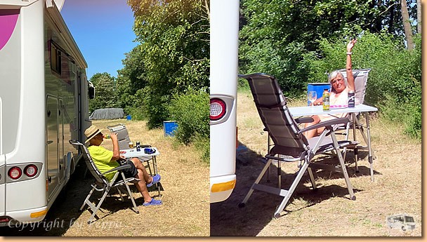 Ein grosser, gepflegter Platz, saubere Sanitäre, ein nettes Lokal (leider Mo + Di geschlossen), es passt wieder einmal für uns. Im März hat Helga die Badesaison beendet, heute war "anschwimmen" im kleinen Badeteich. Am Nachmittag wird gefaulenzt und am Abend sitzen wir bis zum Sonnenuntergang gemütlich mit einem Gläschen Wein vorm Womo. |