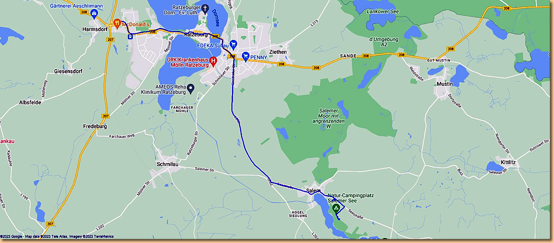 Nach einem wunderschönen Morgenspaziergang rund um den vor dem Stellplatz liegenden See geht es bald auf in die Werkstatt der Firma AL-CAR. Nach einer Stunde ist alles erledigt, ob der Fehler des Navigationgerätes allerdings wirklich behoben ist wird sich wohl erst in den nächsten Tagen zeigen. Wir hoffen das Beste und fahren ein paar Kilometer weiter auf den Naturcamping am Salemer See. |