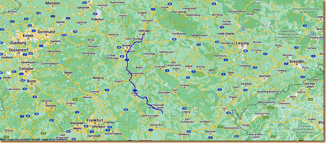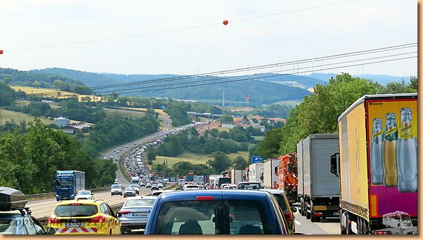 Morgenspaziergang rund um den Kiessee, beim Bäcker nahe dem Stellplatz gibt's "Kärntner Brötchen", Frühstückstisch gedeckt, Kaffee duftet - wir wünschen einen guten Morgen! Auf geht's dann wieder ein Stück der Heimat entgegen. Wir haben es aber gottseidank nicht ganz so eilig und so sind wir heute auf dem Weg zu Rieke und Wolfgang. Auf der Autobahn kommen wir heute so richtig in den "Genuss" im Stau zu stehen, nach rund 1 Stunde stop-and-go gehts dann wieder zügig weiter. Die weitere Strecke durch das Biosphärenreservat Rhön ist dann wirklich ein Genuss. |