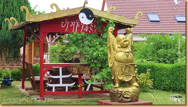 Eine anschliessende Ortsrunde muss sein, und nachdem der Flüssigkeitshaushalt wieder aufgefüllt ist (es hat 32°C) sagen wir herzlichen Dank für Speis und Trank und ziehen uns ins Womo zurück. |