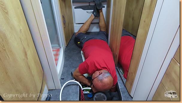 Ein Gewitter in der Nacht, gottseidank ohne Hagel und Sturm, beendet zumindest für heute die Hitze und es kühlt auf angenehme 20°C ab. Am Vormittag ist Arbeitsteilung, während wir Männer den Pumpeneinbau in Angriff nehmen und ihn auch zur vollsten Zufriedenheit zu Ende bringen sind die Mädels unterwegs zum Einkaufen. |