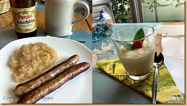 Beim Essen sind wir wieder vereint, herzlichen Dank, Bratwürste, Sauerkraut auf fränkische Art, Dessert und Flüssiges schmecken ausgezeichnet. |