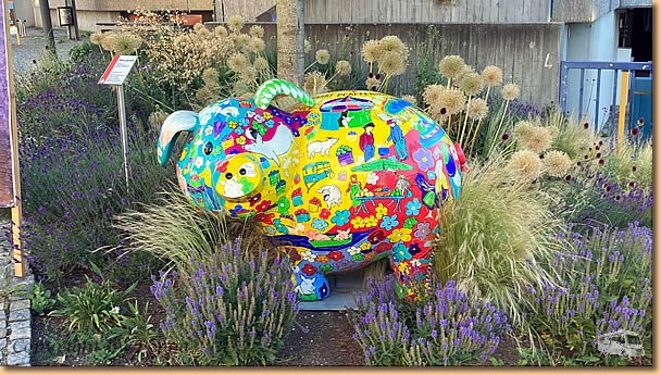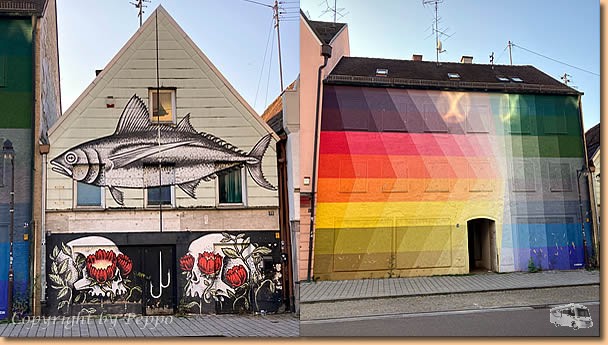 Keine Ahnung warum der Stellplatz einige negative Bewertungen aufzuweisen hat, wir finden ihn okay und auch in der Nacht gibts keine Lärmbelästigungen. Helga's Morgenrunde bringt noch einige bunte Häuser vor die Kamera, alles in allem ein nettes sauberes Städtchen. |